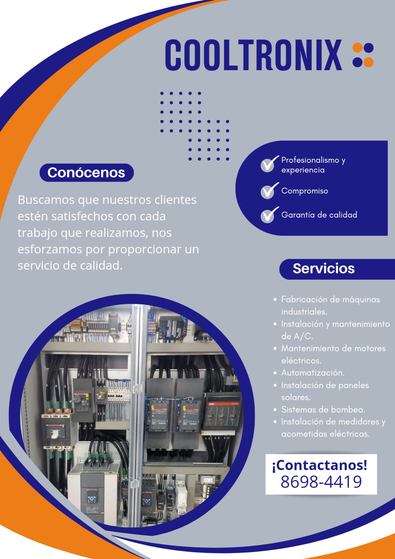 Cooltronix es una empresa especializada en ingeniería eléctrica y electrónica que se dedica al mantenimiento de equipos y sistemas. Con una amplia experiencia en el sector, brindamos soluciones eficientes y de calidad para satisfacer las necesidades de nuestros clientes.